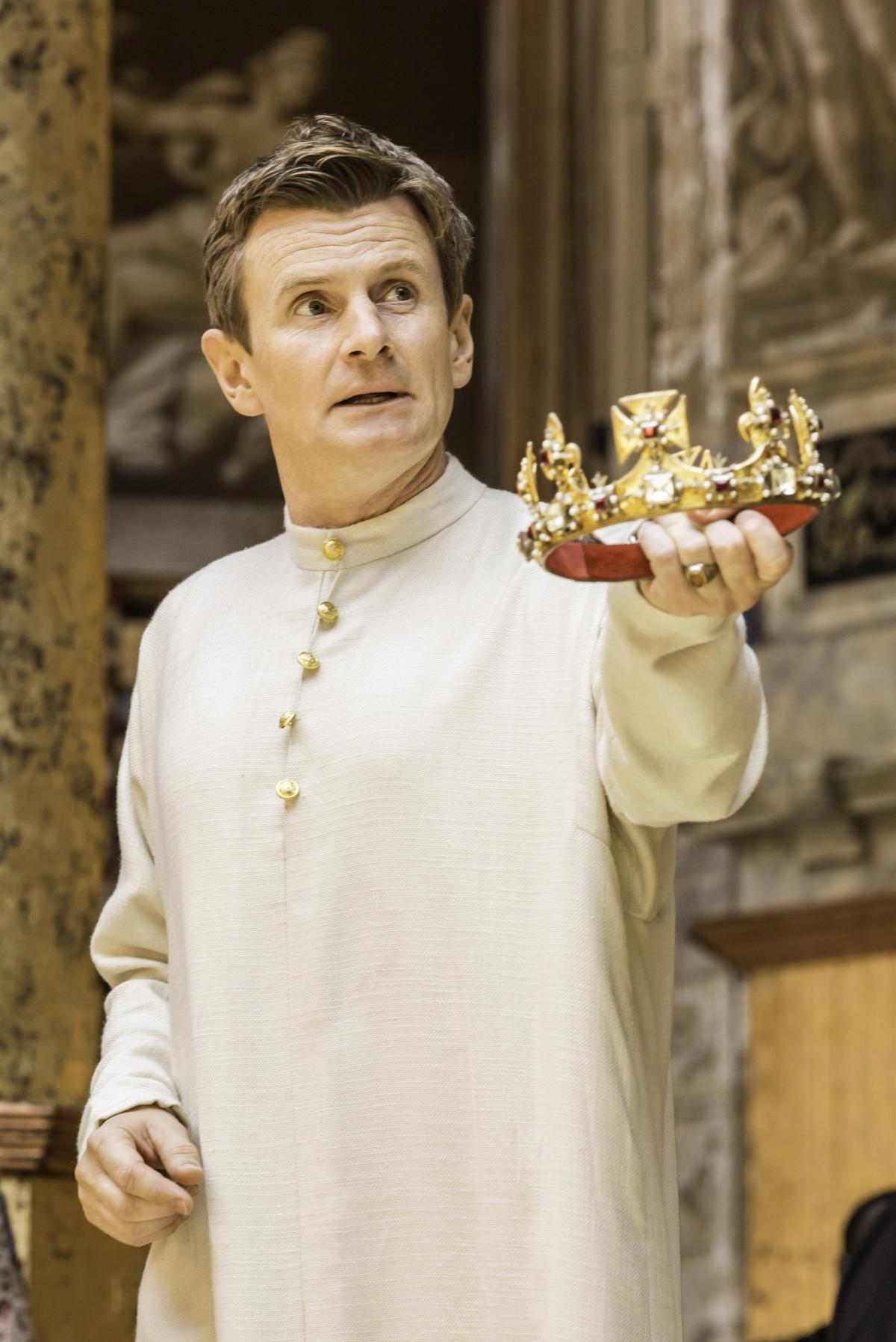 2016 г.в. Проект Globe on Screen Постановка шекспировского театра «Глобус». Пьеса «Ричард II», открывающая цикл исторических хроник (а они составляют почти треть шекспировского канона), не пользовалась особым успехом вплоть до XIX века: слишком много политики, среди главных персонажей нет женщин, и – неоднозначный главный герой, которому очень сложно сочувствовать, особенно в начале действия. ХХ век стал временем переосмысления и реального Ричарда, интеллектуала и эгоцентрика, и его воплощения в сочинении Шекспира. В разное время Ричарда играли великие британцы Джон Гилгуд, Джереми Айронс, Рэйф Файнс, Марк Райлэнс, Эдди Редмэйн. Самые яркие последние воплощения взбалмошного короля – Бен Уишоу в сериале «Пустая корона» (Hollow Crown, 2012) и Дэвид Теннант в спектакле Грегори Дорана на сцене Королевской Шекспировской компании в 2013 году. Режиссер глобусовской адаптации Саймон Годвин делает акцент на историчности, ярких цветах и красочных костюмах. Его постановка опирается на дизайн художника Пола Уиллса, буквально наполнившего сцену золотым сиянием. Психологическая разница главных героев – короля Ричарда (Чарльз Эдвардс) и его кузена-заговорщика Генриха Болингброка (Дэвид Стурзэйкер) – подчеркнута кроем костюмов, цветом, пластикой. Первый, расслабленный и беззаботный, словно парящий над суетой, одет в белое и золотое; второй, жесткий и стремительный, человек действия, появляется в черном, демонстрируя простую земную основательность. Шекспир не писал стопроцентных трагедий, в каждой его пьесе есть место смеху. У Саймона Годвина средневековая жестокость соседствует с иронией – не зря на роль Ричарда взят актер, известный, в первую очередь, комедийными ролями. Годвин дополняет Шекспира, открывая действие своеобразным флэшбэком – коронацией Ричарда, произошедшей, когда ему было десять лет. Эта важная историческая деталь, отсутствующая в пьесе, объясняет годвиновского Ричарда, капризного и безответственного, не повзрослевшего вовремя и взрослеющего здесь и...