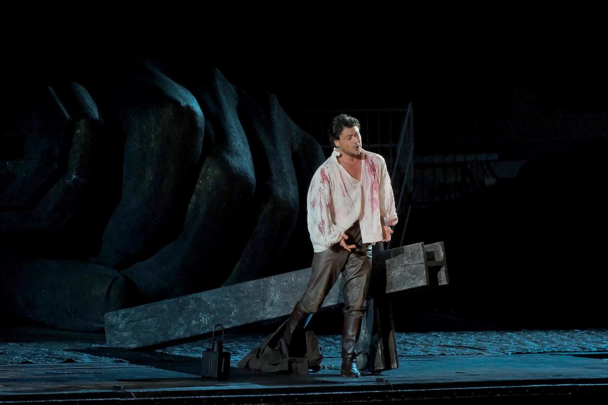 Уго де Ана мастерски использует обширное пространство амфитеатра для размещения массивных сценических элементов, заимствованных из реальных римских локаций, в которых происходит действие. Этот спектакль — «зрелище монументального масштаба» (Online Merker).