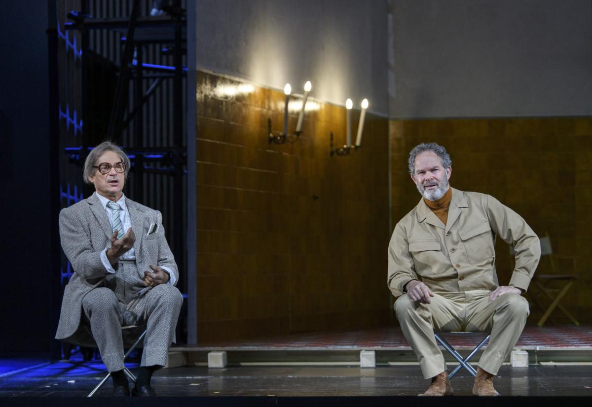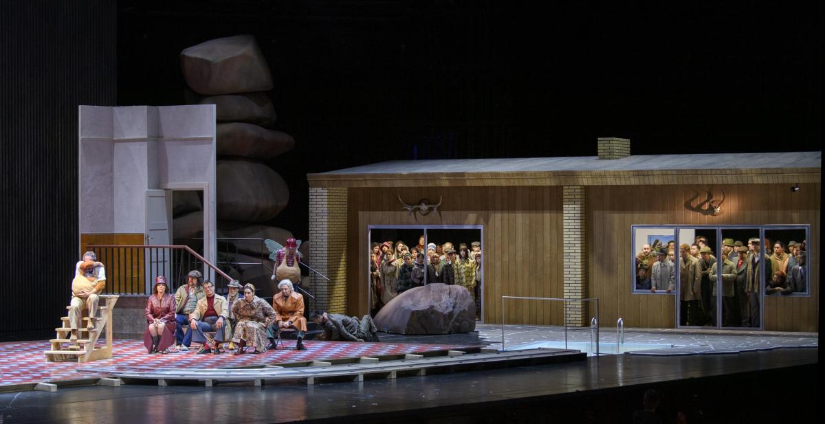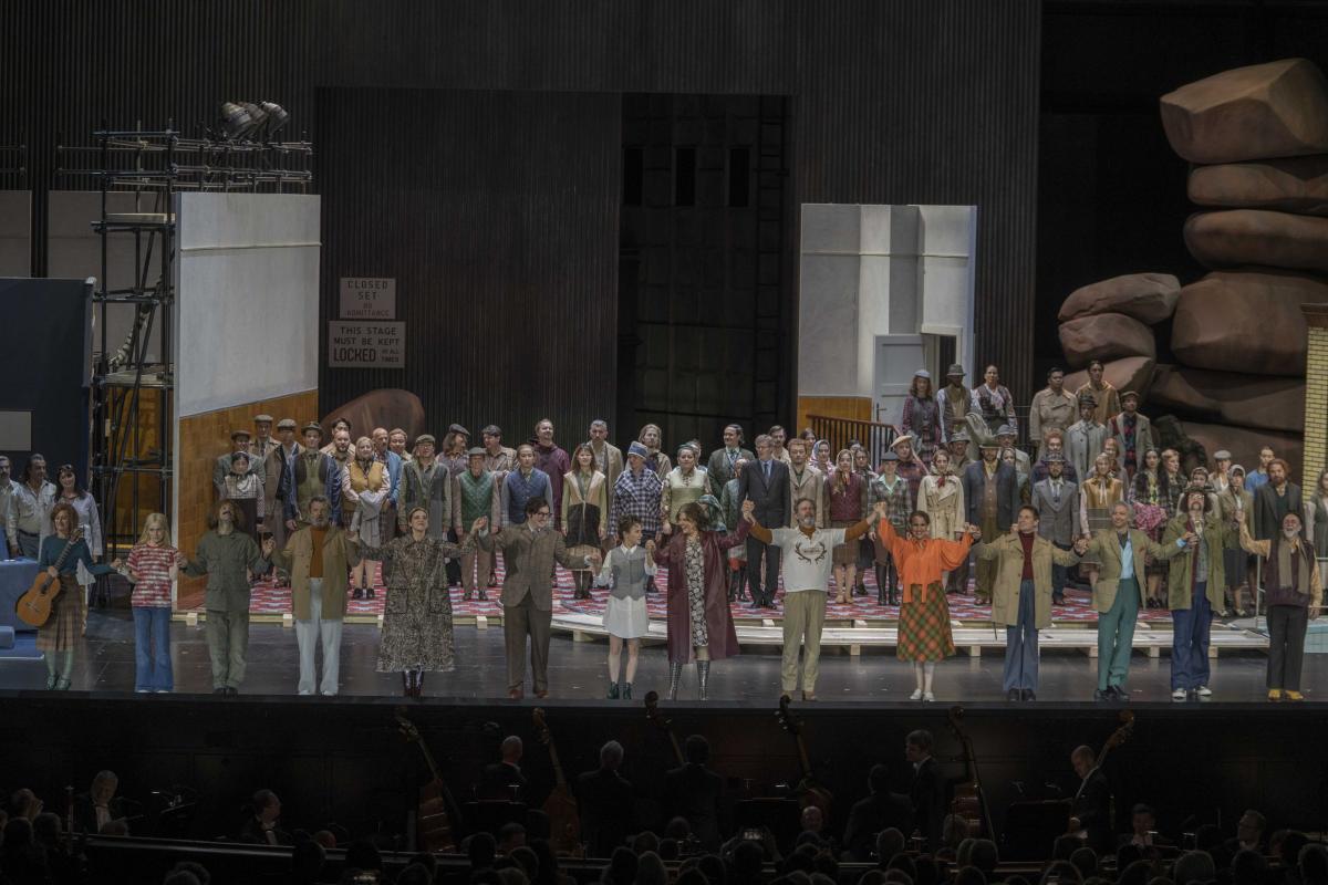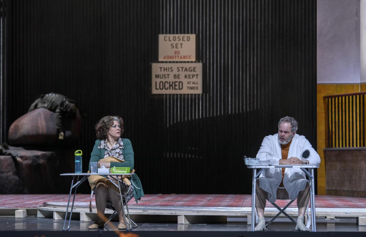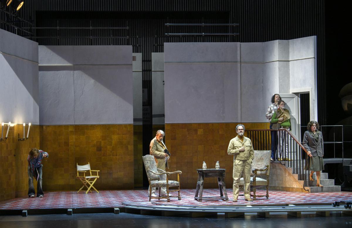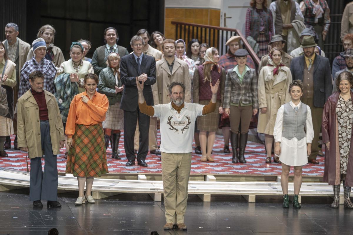 Режиссер Кристоф Марталер переносит действие знаменитой «шекспировской» оперы на съемочную площадку 1960-х годов — своеобразный оммаж голливудскому гению Орсону Уэллсу, который в свое время играл Фальстафа и снял о нем картину.