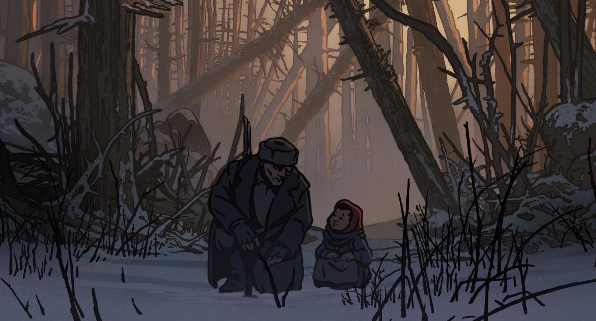 Мишель Хазанавичус с мультипликационным фильмом о спасенной маленькой девочке из «поезда смерти», идущего в Аушвиц.