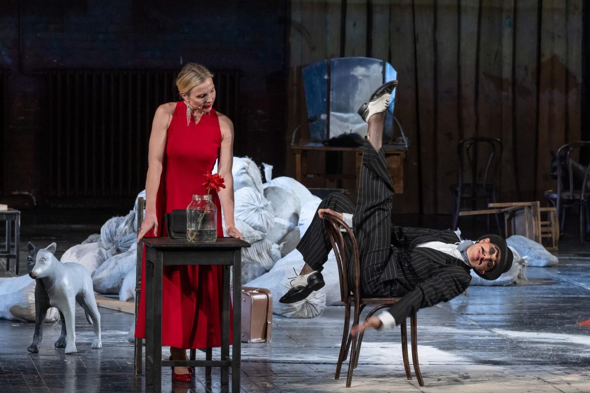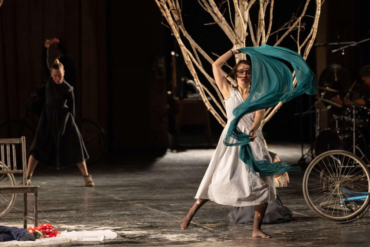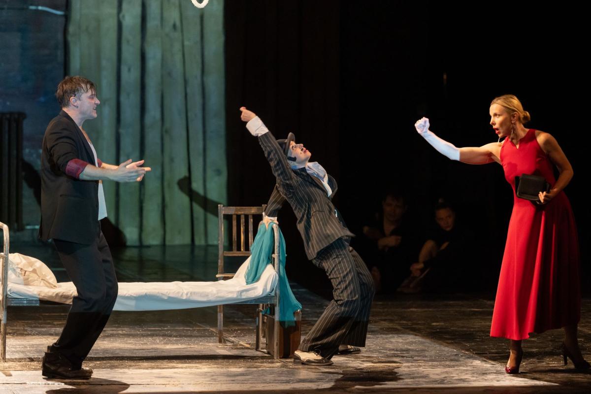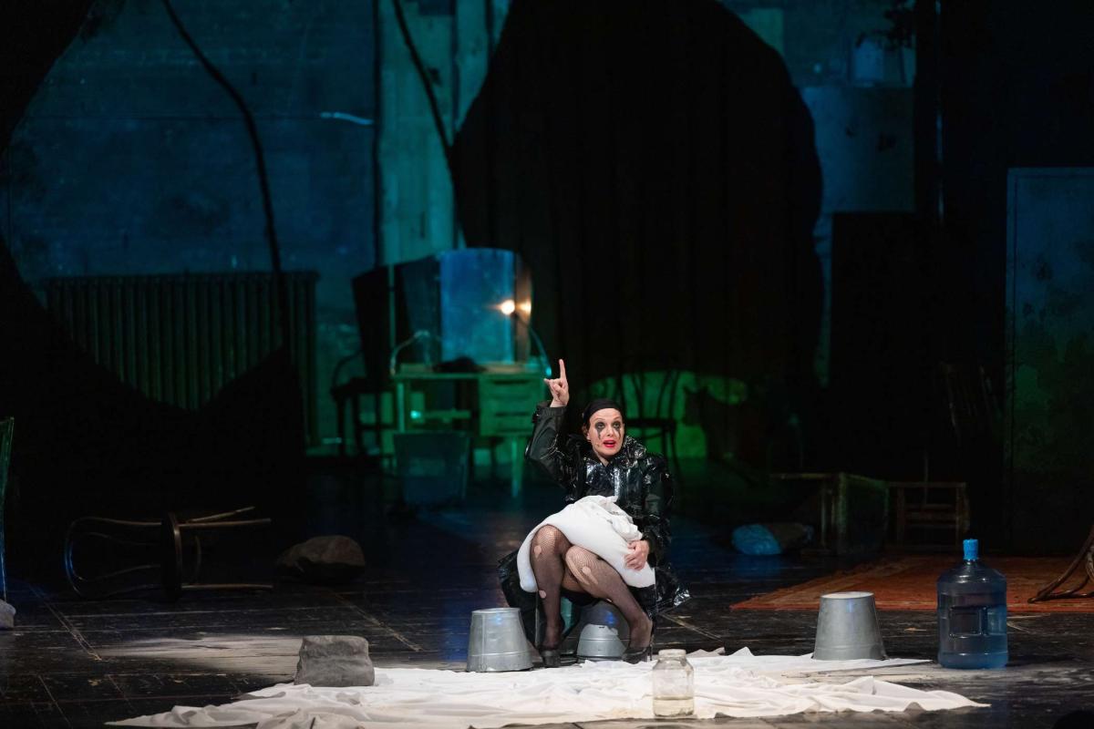 Впрочем, как выясняется, боги как раз этот уголок не забыли: однажды они, вернее она (трех брехтовских богов играет одна хрупкая Анастасия Лебедева) спускается с небес и ищет помощи у смертных. Единственная, кто соглашается приютить ее, — нелепая безалаберная проститутка Шен Те (Александра Урсуляк). Божественная благодарность оборачивается неожиданными испытаниями для девушки, проявившей доброту. В финале спектакля мы увидим совсем иную героиню, не похожую на ту наивную и отзывчивую Шен Те.