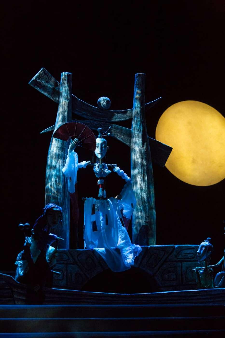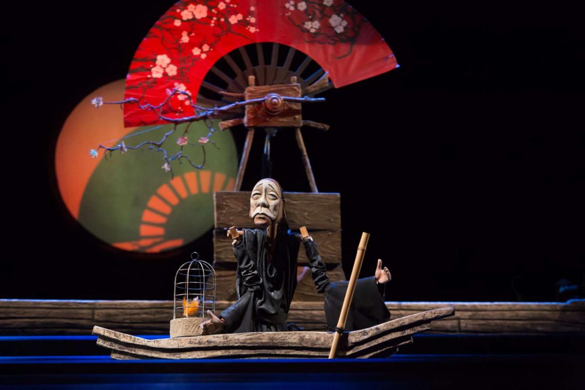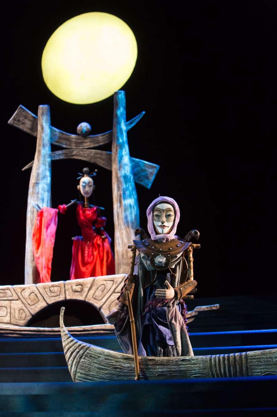 Это удивительная сказка, в которой сталкиваются два мира — строгий Китай и романтичная Венеция. История любви жестокосердной красавицы Турандот и принца Калафа разыгрывается с такой неподдельной страстью, что порой забываешь, что на сцене куклы. Огромная луна, венецианские мосты, черная гладь воды, гондолы, веера, колокольчики и, конечно же, куклы — настоящие произведения искусства — завораживают, заставляя на два часа забыть обо всем, кроме того, что происходит на сцене.