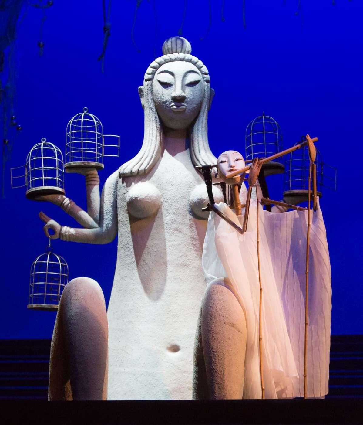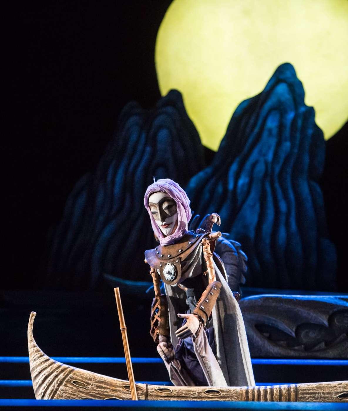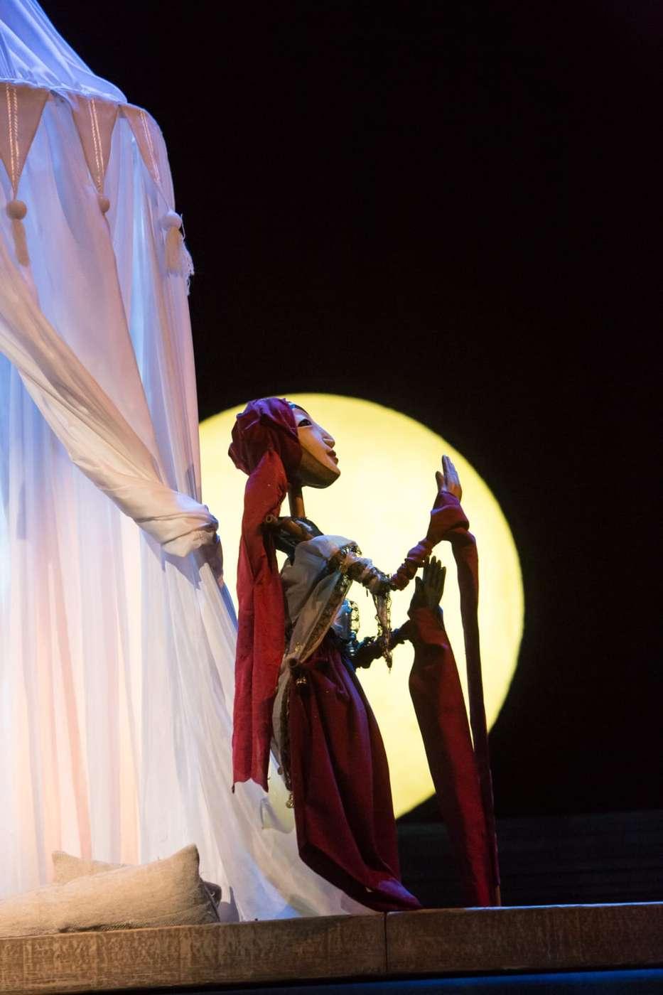 Это удивительная сказка, в которой сталкиваются два мира — строгий Китай и романтичная Венеция. История любви жестокосердной красавицы Турандот и принца Калафа разыгрывается с такой неподдельной страстью, что порой забываешь, что на сцене куклы. Огромная луна, венецианские мосты, черная гладь воды, гондолы, веера, колокольчики и, конечно же, куклы — настоящие произведения искусства — завораживают, заставляя на два часа забыть обо всем, кроме того, что происходит на сцене.