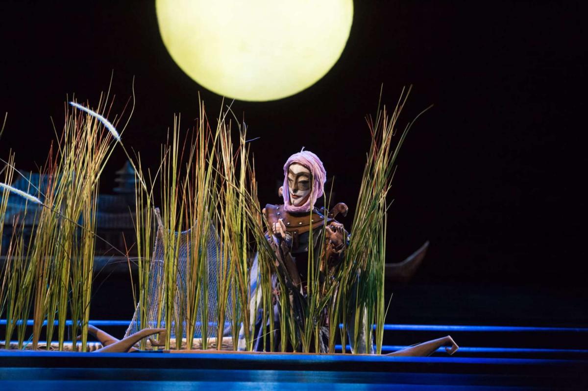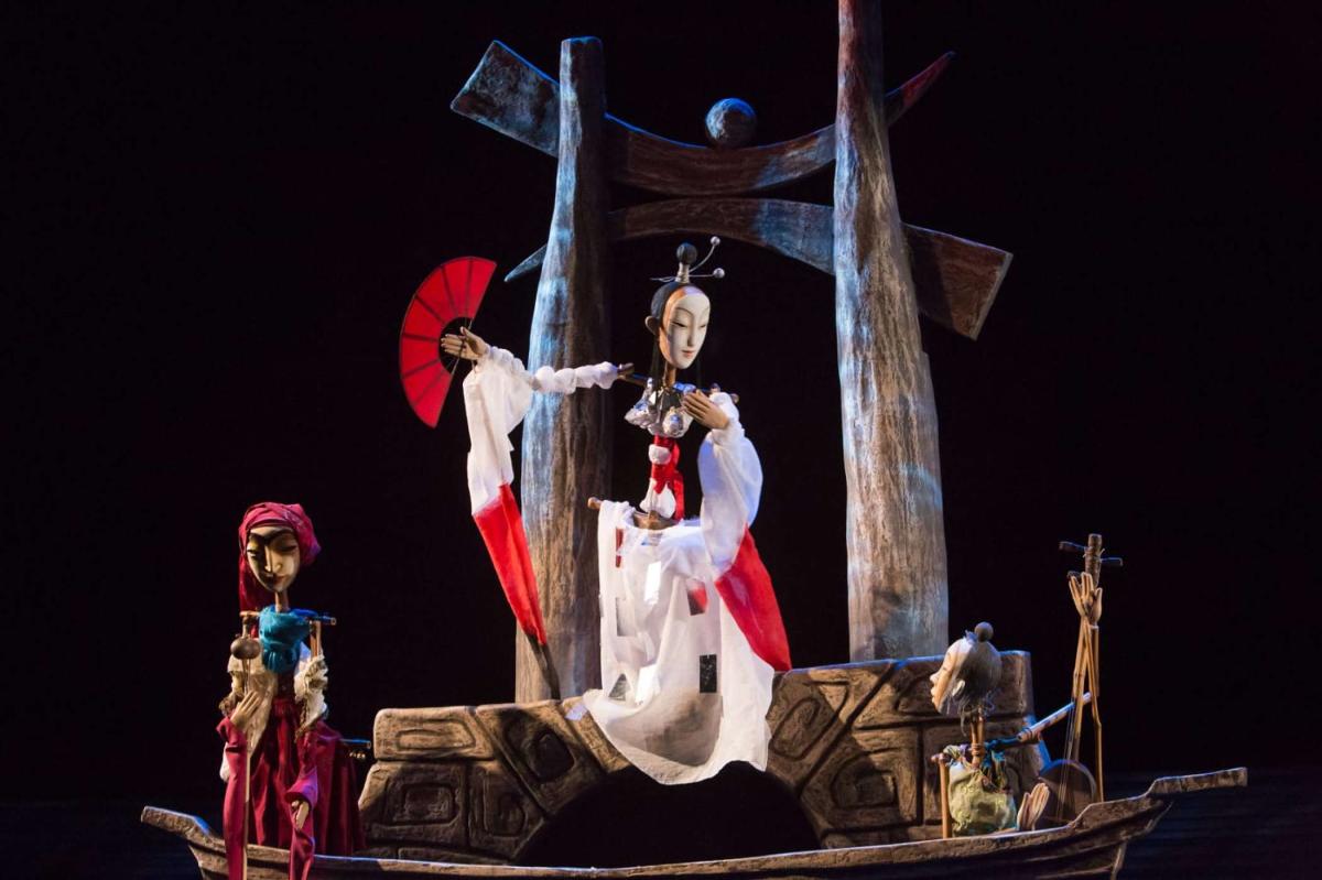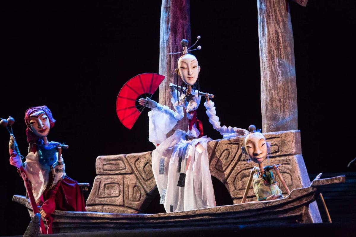 Спектакль невероятной красоты по сказке Гоцци, где встречаются древний Китай и средневековая Италия: огромная луна, мосты и лагуны, веера и изысканные куклы. А еще — много импровизации и шуток от персонажей традиционной комедии дель арте.