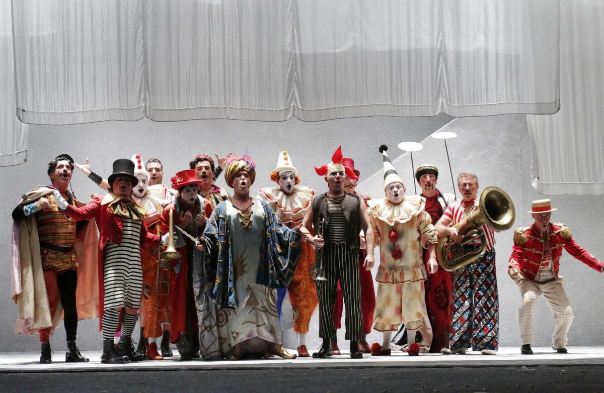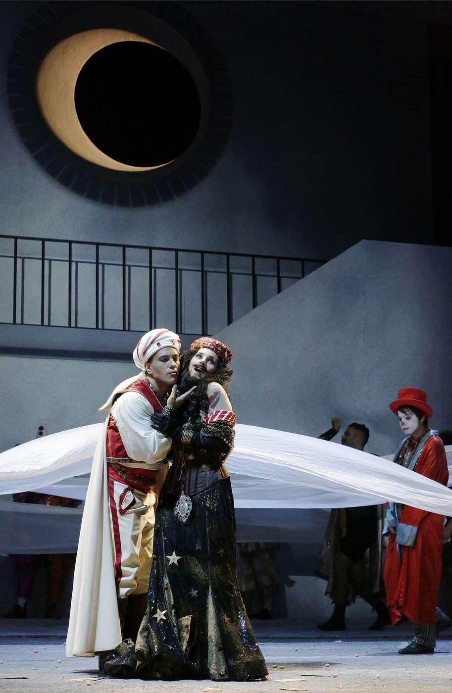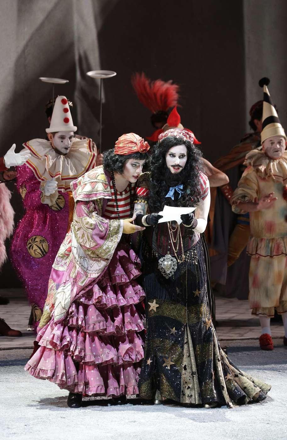 В этой феллиниевской транспозиции Ливерморе не смог обойтись без темы цирка, поэтому «хор цыган, турок и масок» превращается в красочную труппу укротителей львов, акробатов, воздушных гимнастов и клоунов — и костюмы Джанлуки Фаласки, как обычно, великолепны и как нельзя кстати.