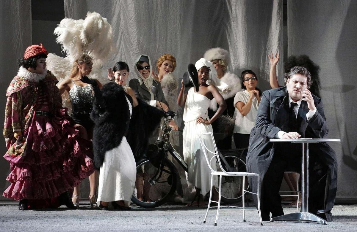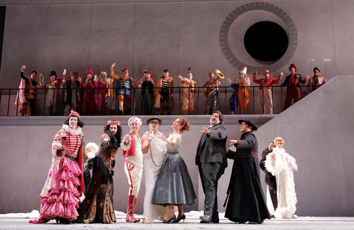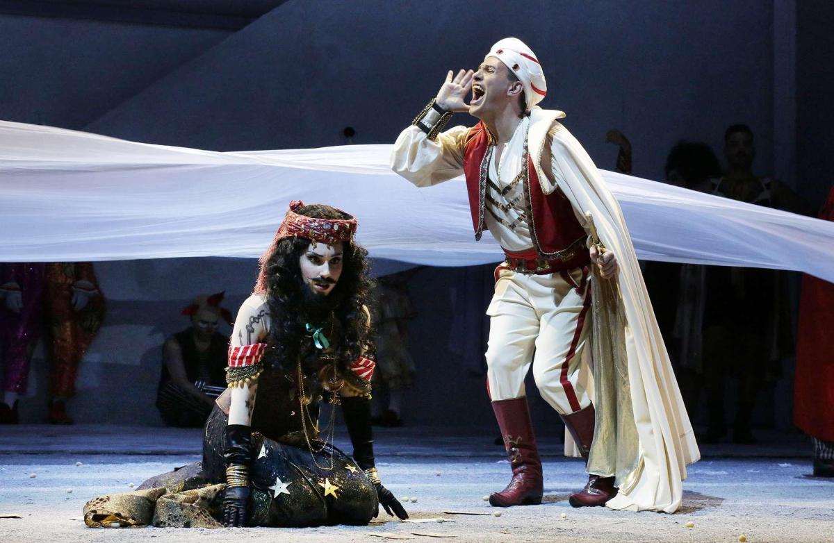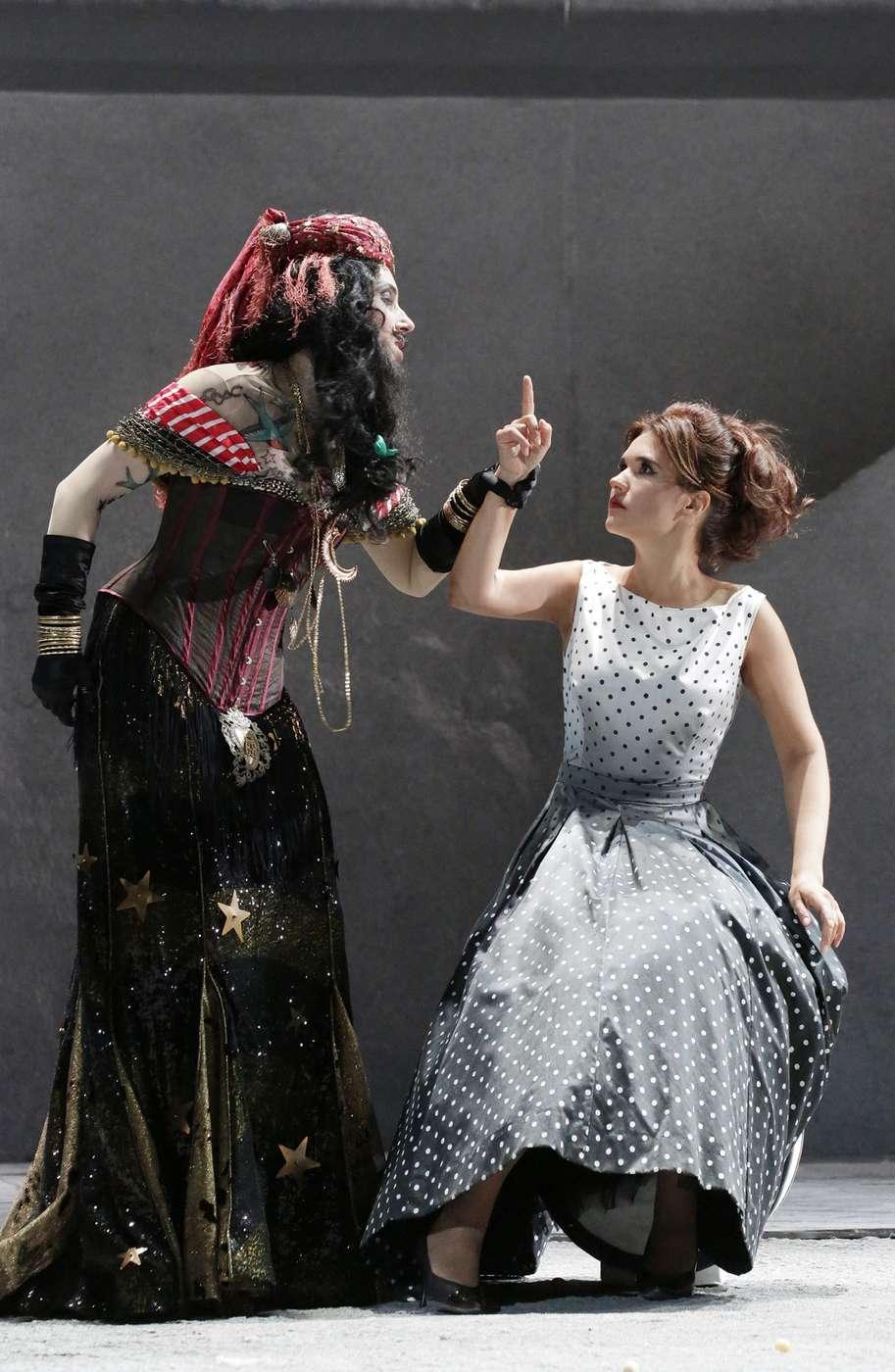 В этой феллиниевской транспозиции Ливерморе не смог обойтись без темы цирка, поэтому «хор цыган, турок и масок» превращается в красочную труппу укротителей львов, акробатов, воздушных гимнастов и клоунов — и костюмы Джанлуки Фаласки, как обычно, великолепны и как нельзя кстати.