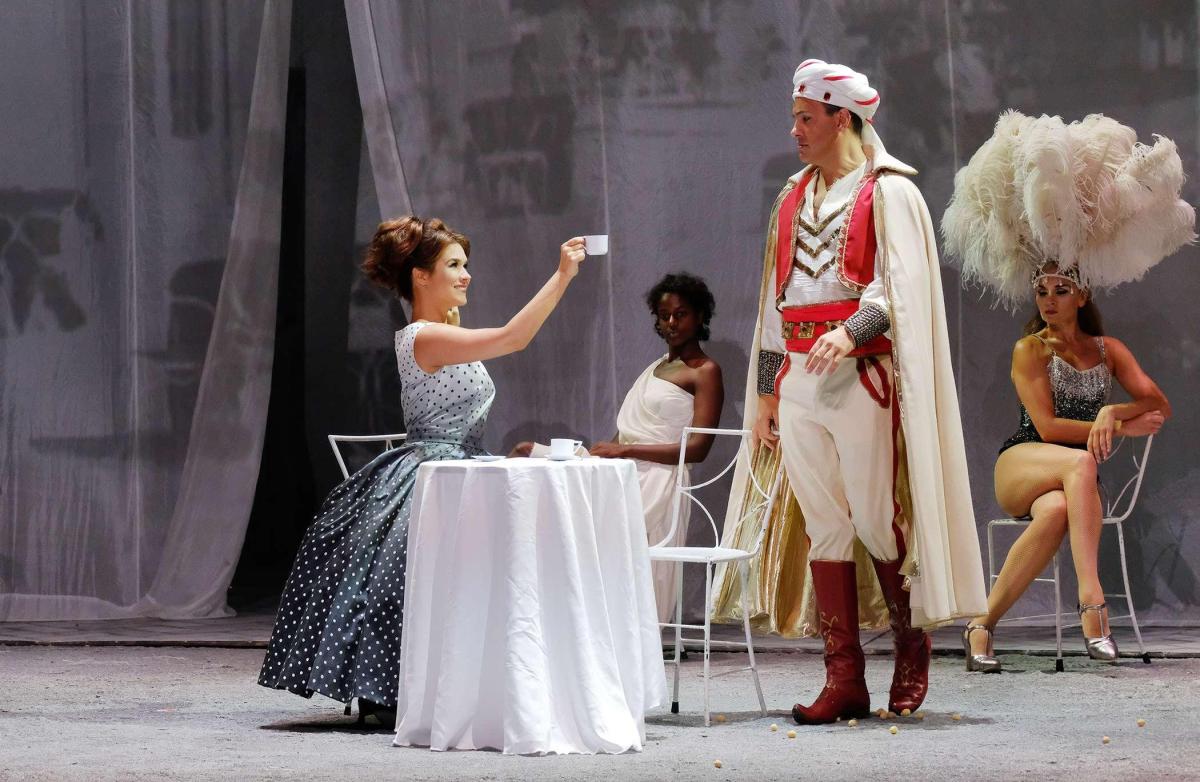 Кино- и театральный режиссер Давиде Ливерморе («ДОЛЬЧЕ!») очень точно и выигрышно провел параллели с «Белым шейхом» и «8 ½» Федерико Феллини, поместив действие «Турка» Россини на съемочную площадку и щедро представив весь калейдоскоп персонажей, которых мы помним и любим по итальянским фильмам 1960-х.