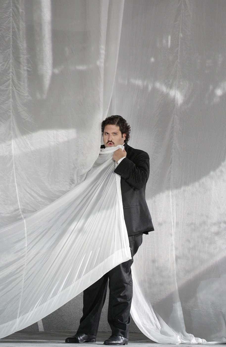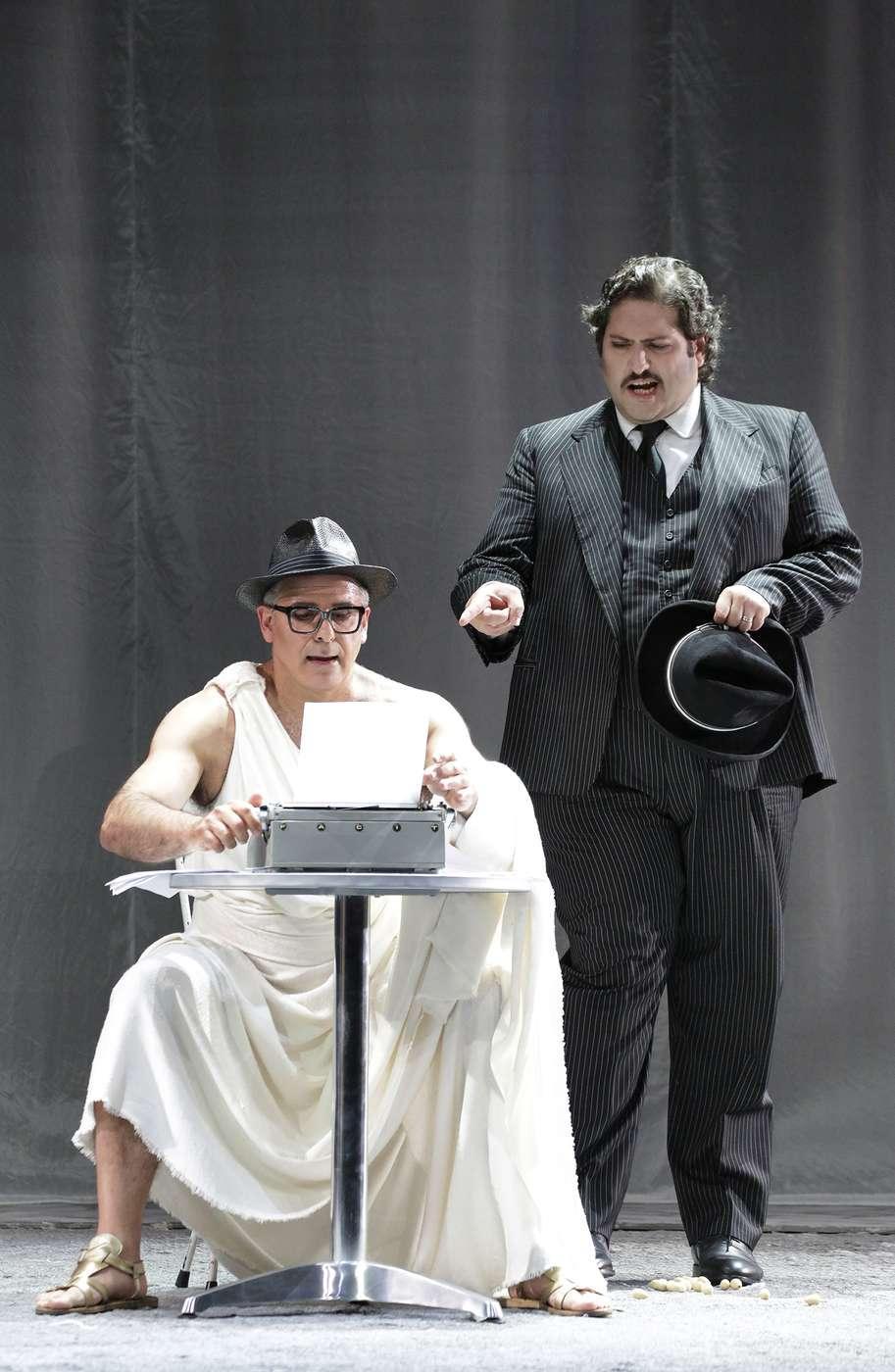 Люди с хлопушками и игра со светом, переключающая «картинку» на сцене с цветной на черно-белую и обратно, напоминает нам, что это лишь игра в кино, но съемку уже не остановить: первая постмодернистская опера заиграла новыми, неожиданными нюансами!