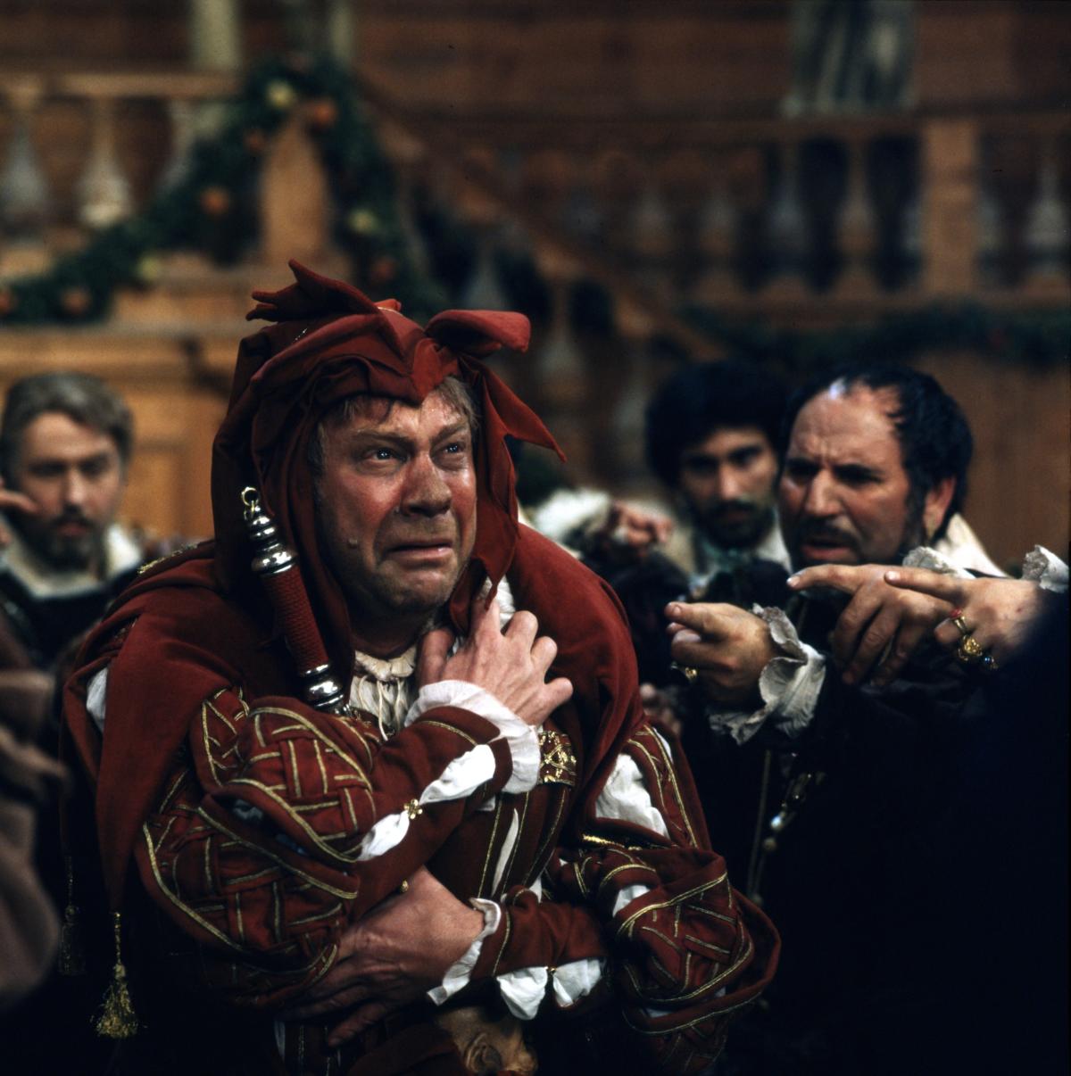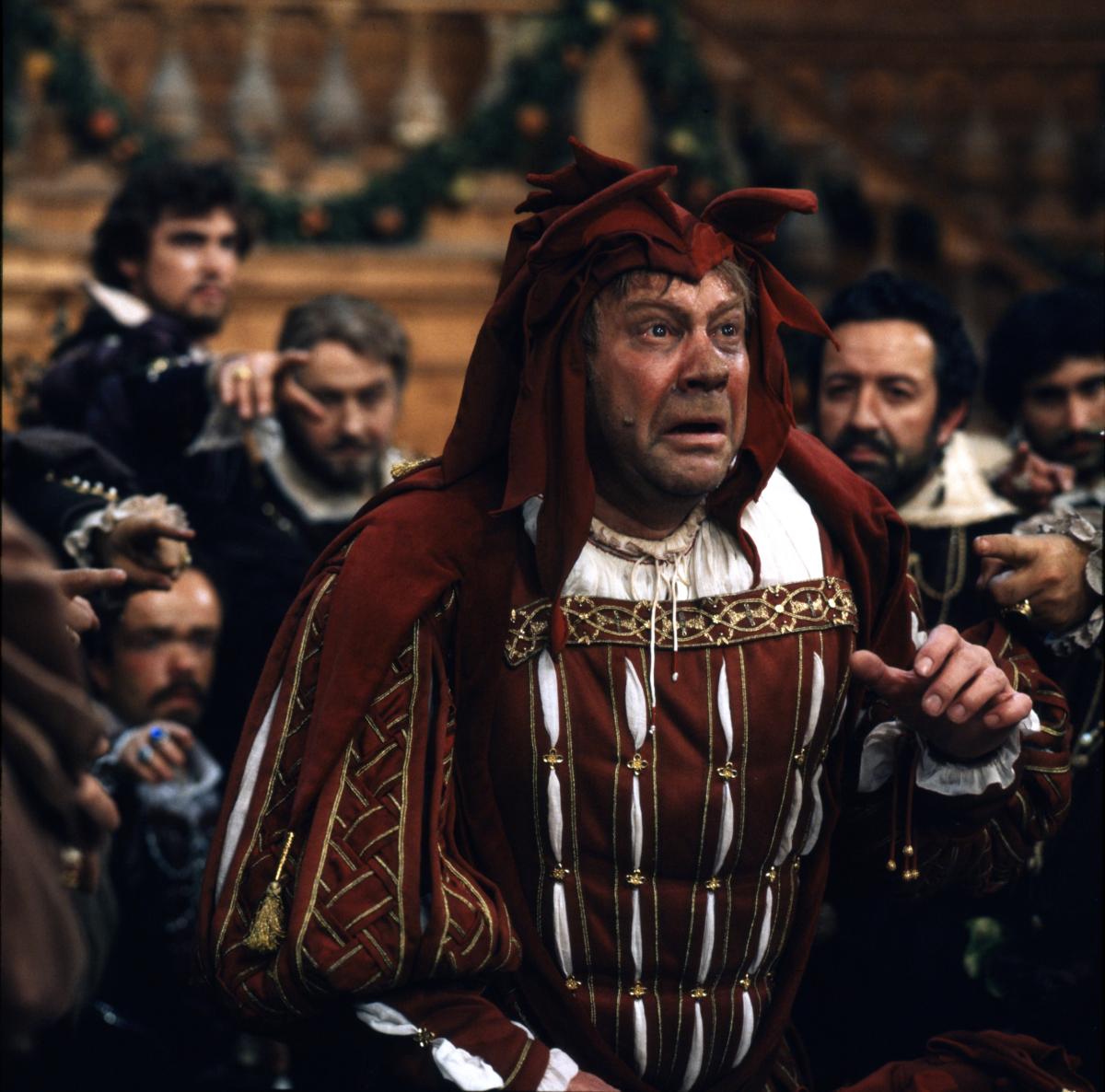 Фильм Поннеля, рассказывающий мелодраматичную кровавую историю о горбатом шуте, его похищенной дочери и мести, которая обернулась ужасной катастрофой, воспроизводит вердиевскую драму буквально: великолепные локации — пышные, но обветшалые дворцы, прибрежные трущобы, скученный город; разодетые придворные, карлики в шутовских нарядах, герцог, облаченный в позолоченные гирлянды из фруктов. Его двор не только распущен, но и развратен, антисанитария — тоже в духе времени: мыши в салате!