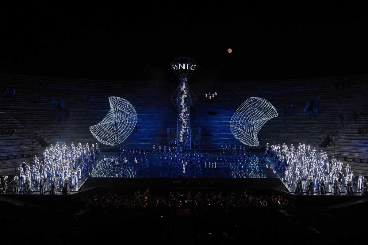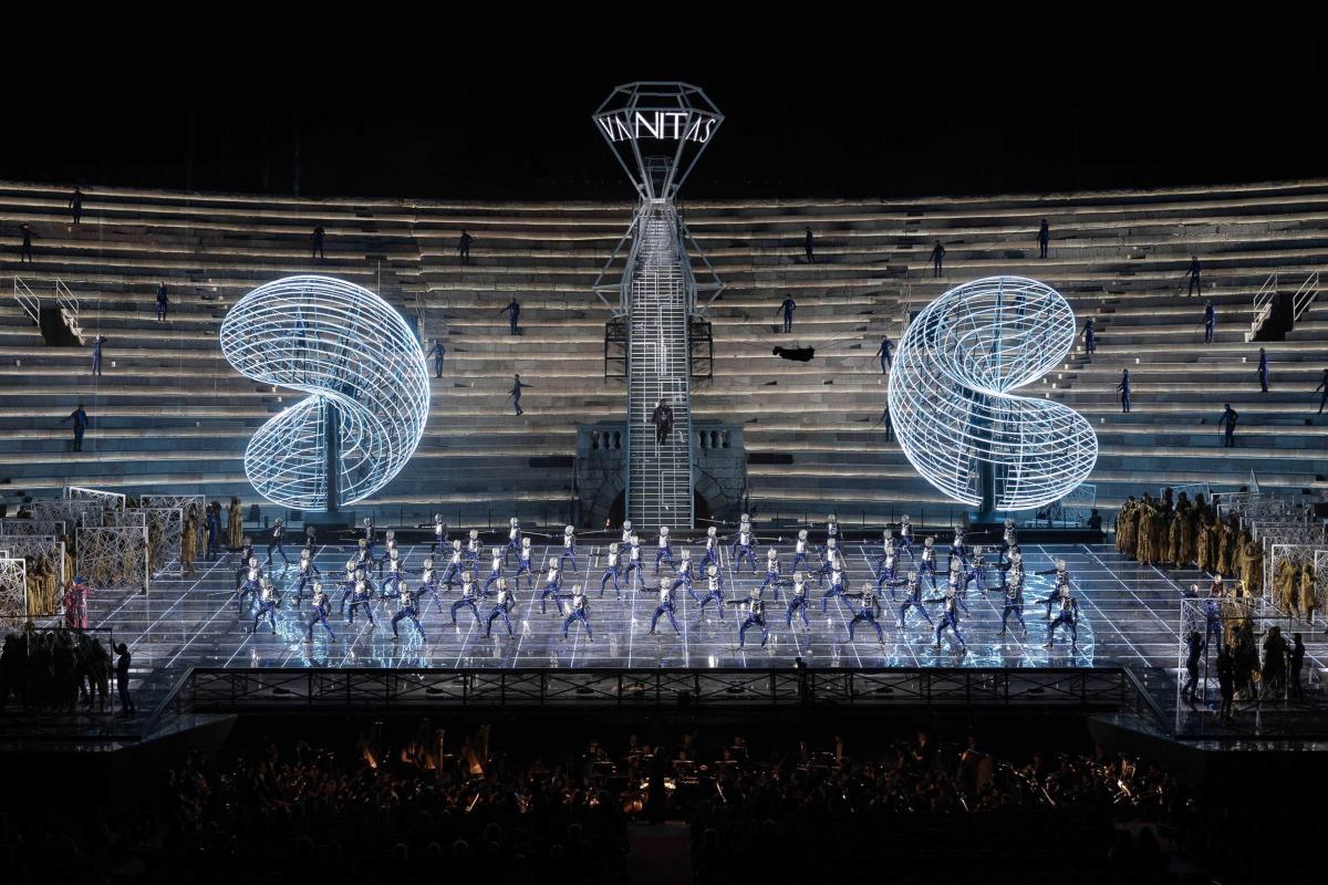 Световые эффекты, самая современная сценическая техника, «пасхалки» для поклонников «далеких-далеких галактик» вкупе с шармом классической оперы — великолепная футуристическая постановка Стефано Поды стала хитом фестиваля на Арене ди Верона-2025.