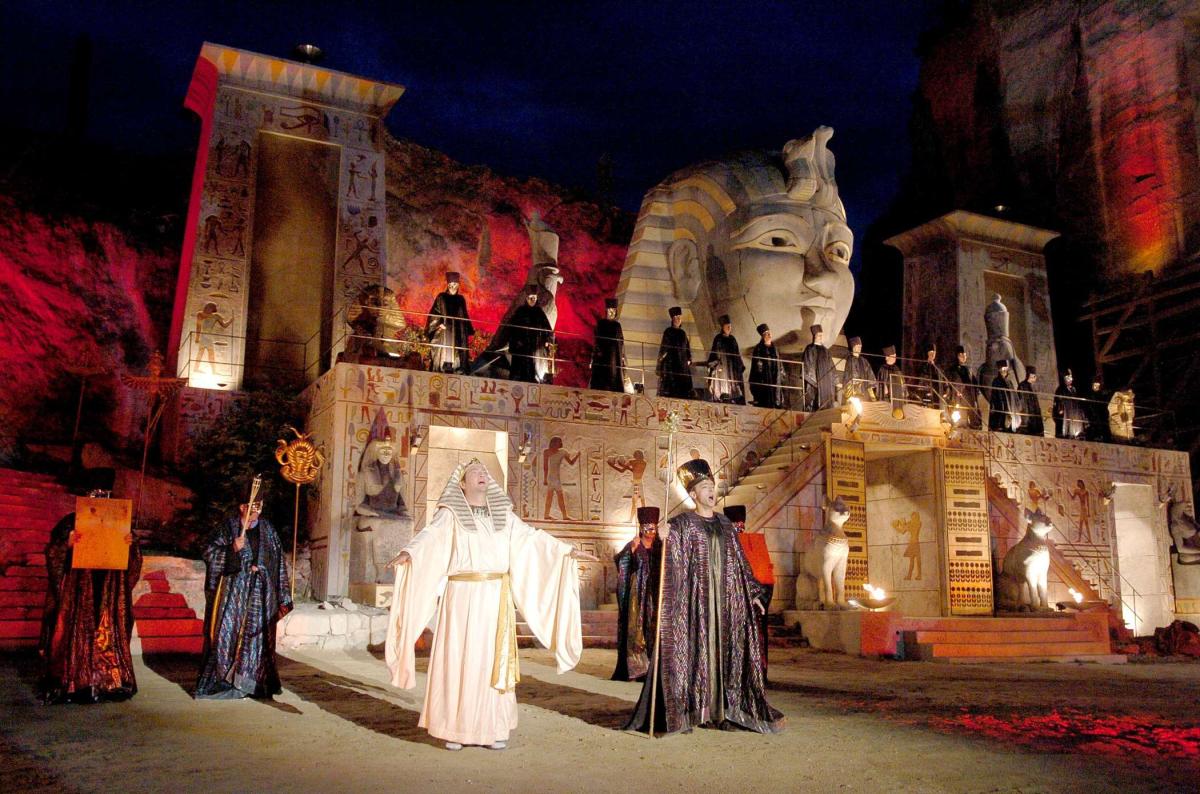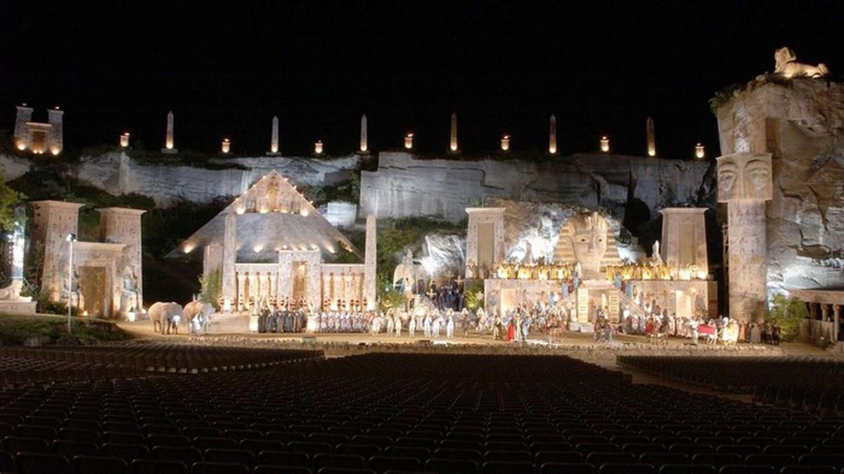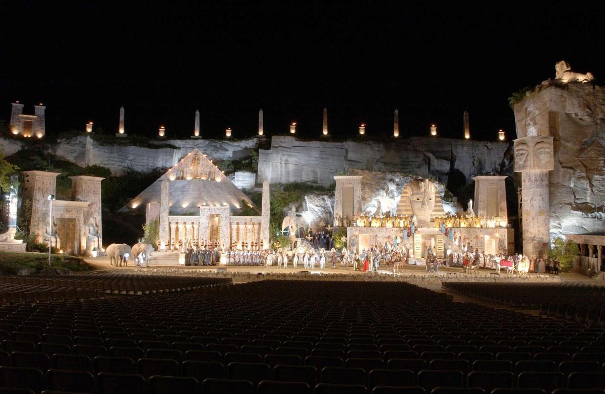 Огромная, зрелищная, буйно-романтичная древнеримская каменоломня Санкт-Маргаретен, расположенная в австрийском Бургенланде — идеальная оперная сцена для красочной «Аиды» Джузеппе Верди. Эта постановка одной из наиболее знаменитых опер гения представляет собой настоящее пиршество для всех чувств, а римские развалины — идеальная площадка для оперных спектаклей под открытым небом. «Большая опера» Верди, разумеется, требует масштабности, и здесь в сцене Триумфального марша принимают участие живые лошади, слоны и более 400 статистов — не считая общей роскоши постановки.