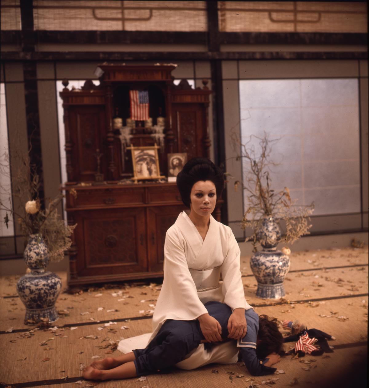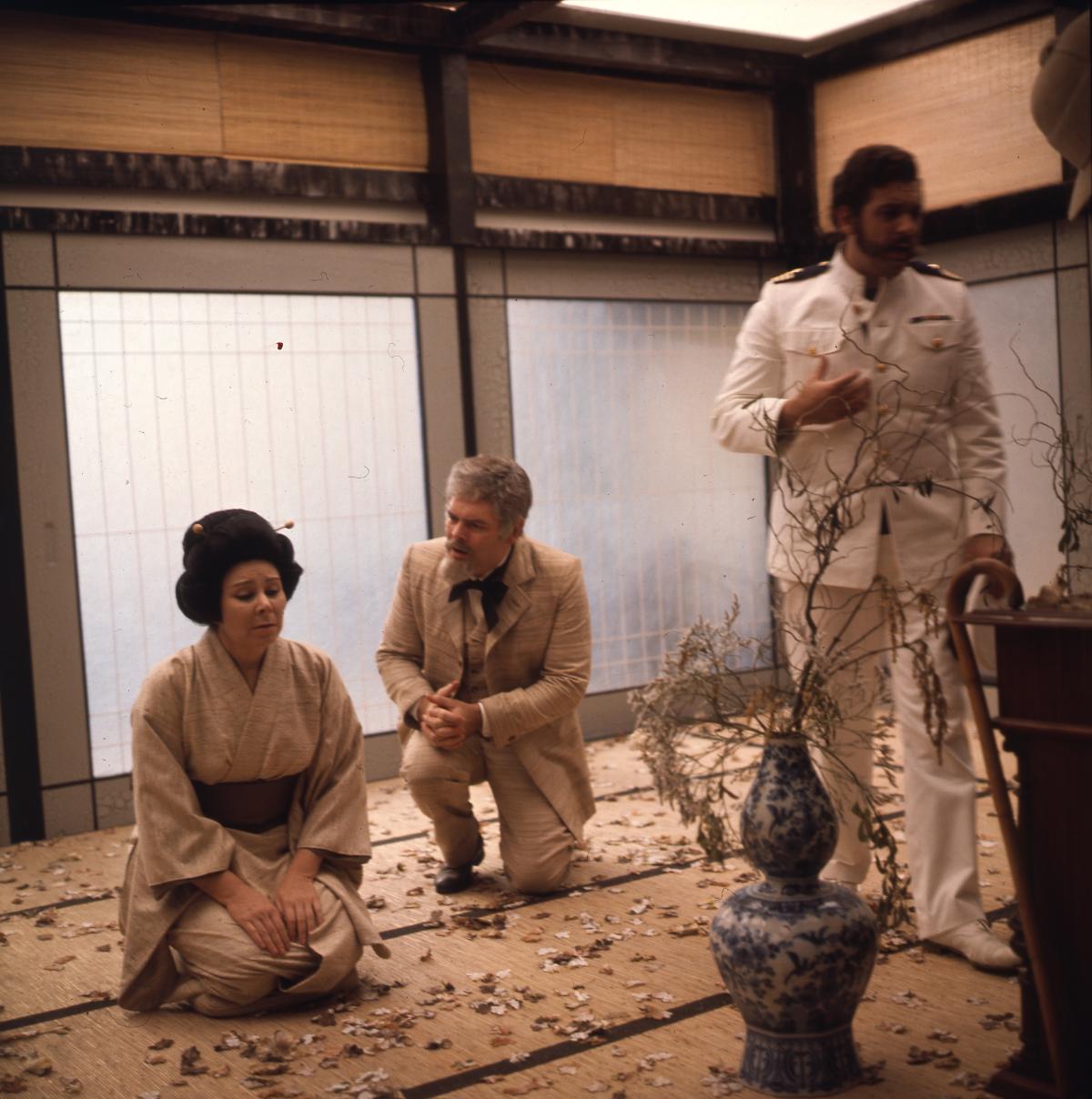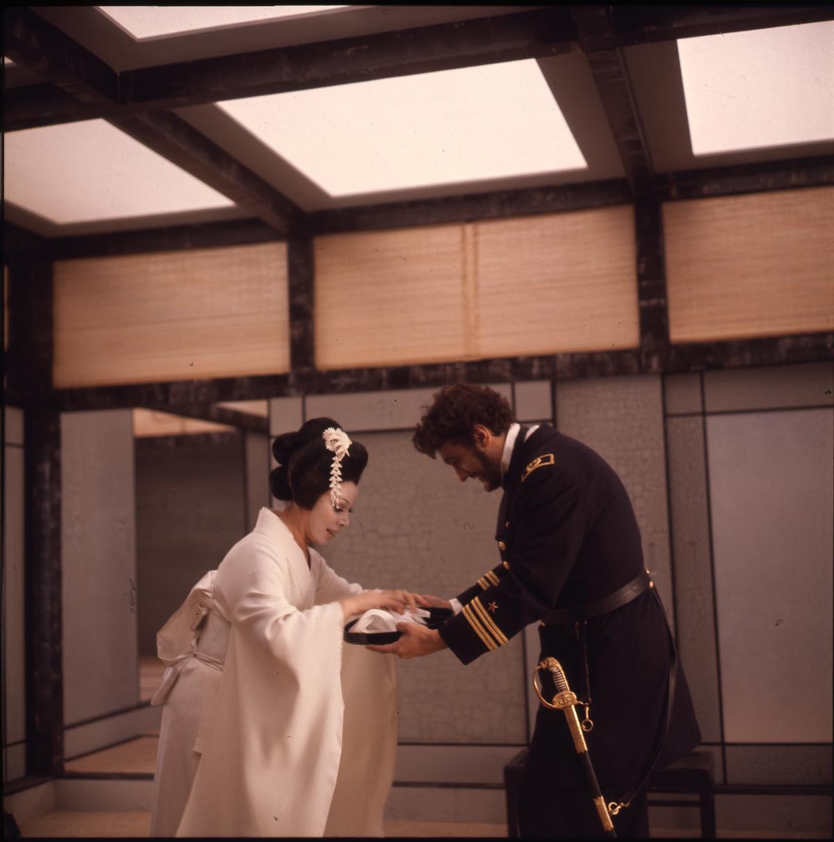 Сцены появляются и исчезают, перетекая одна в другую, персонажи буквально и фигурально прорывают стены. Герои видений Чио-Чио-сан (Мирелла Френи) движутся подобно стилизованным фигурам театра кабуки. Ее сны — калейдоскоп образов: страстное воссоединение с Пинкертоном, сюрреалистичные видения Америки в лице Дядюшки Сэма и сама Баттерфляй, вопреки здравому смыслу одетая в западную одежду как зримое воплощение мечты об ассимиляции. Образы Поннеля глубоки и тревожны. Одной из любопытных черт фильма является своего рода реабилитация Пинкертона: режиссер переосмысливает его легкомыслие, и последующее раскаяние — и со сценическим обаянием Пласидо Доминго это сделать совсем нетрудно.